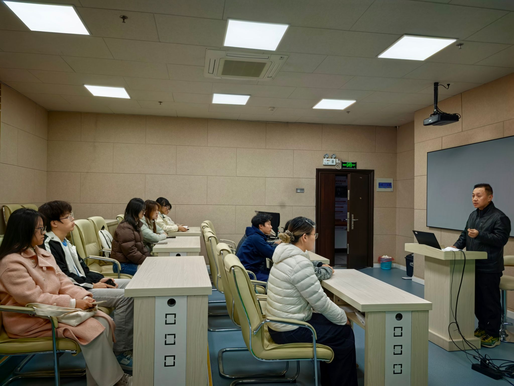 为持续推进信息技术与教育教学深度融合,充分发挥学校演播室教学支撑效能,全面夯实数字化课程录制专业基础,11 月 27 日下午,我院全媒体中心组织开展精品课录制专题培训会。本次培训由全媒体中心张劲涛老师主讲,10 余名全媒体教学中心师生参与,通过 “理论讲解 + 实操演练 + 互动答疑” 的形式,构建 “学练用” 一体化培训体系,为高质量课程录制工作筑牢根基。